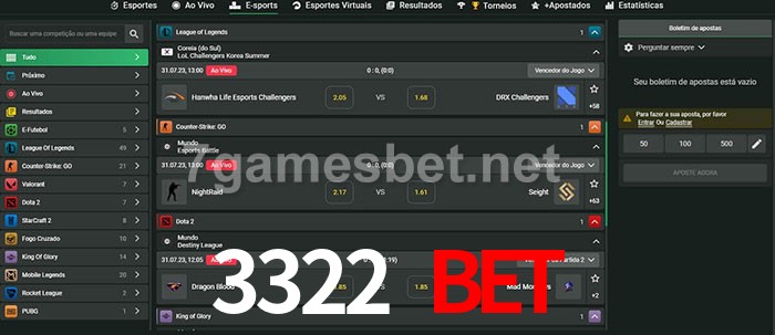 O 3322 Bet oferece uma grande seleção de opções de apostas em e-sports com probabilidades competitivas